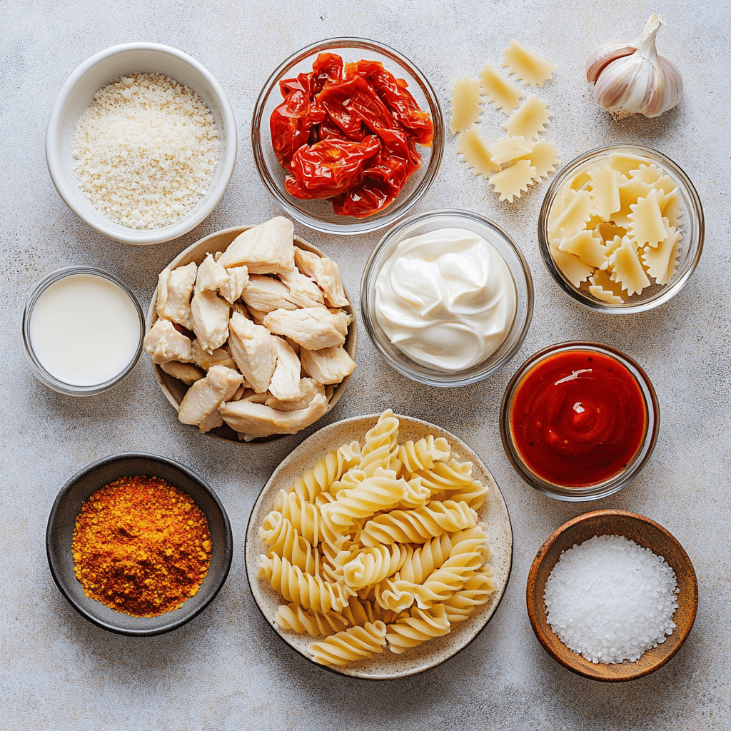 The flavor profile I’m aiming for is a delightful balance of creamy, cheesy, and savory flavors with a hint of spice from the chili flakes. The chicken is seasoned with a blend of spices and cooked to perfection, adding a tender and juicy protein element. The sauce is a creamy blend of garlic, tomato paste, milk, cream, and mozzarella cheese, creating a rich and flavorful sauce that coats the pasta beautifully.