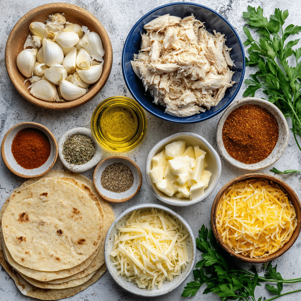 - Make-Ahead: Prep chicken filling and shred cheese up to 2 days in advance; store separately. Assemble and toast wraps fresh for best texture.