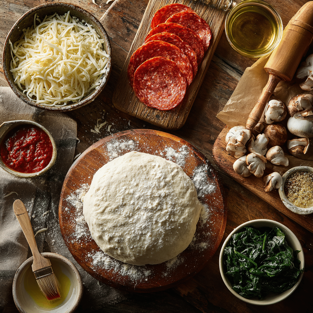 Cheesy Pepperoni Stromboli uses minimal ingredients for maximum flavor. Here’s what you need and why each one matters: