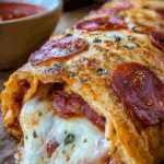 Craving a warm, cheesy, pizza-inspired treat that’s perfect for sharing? Cheesy Pepperoni Stromboli is a delicious rolled-up version of pizza, stuffed with gooey mozzarella, spicy pepperoni, and Italian herbs, all wrapped in golden, crispy dough. Ideal for game nights, family dinners, or a fun appetizer, this easy recipe transforms simple pizza dough into a crowd-pleasing dish. Serve it with marinara sauce for dipping, and watch it disappear! Ready to roll up some cheesy goodness? Let’s get baking!