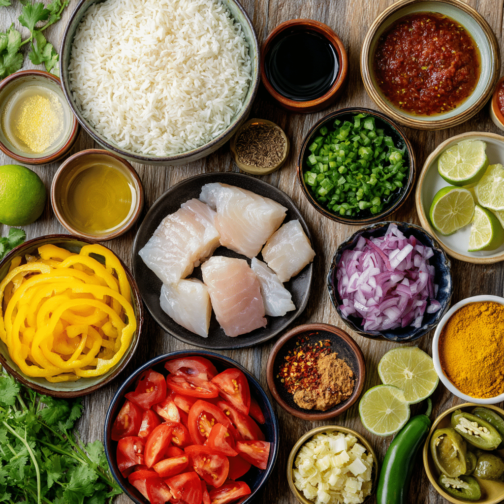 • Make-Ahead: Prep vegetables, measure spices, and cook rice up to 1 day in advance; store separately. Cook stew fresh to maintain fish quality.