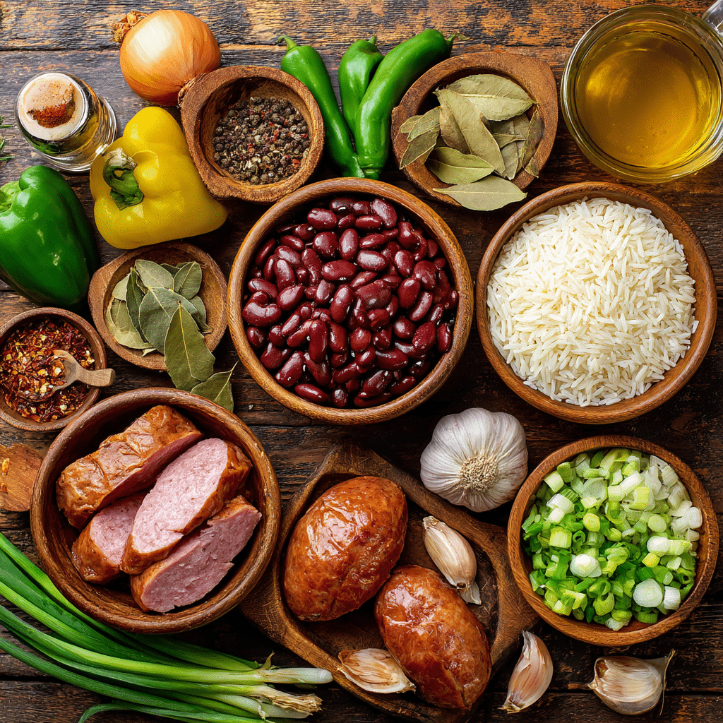 Red Beans and Rice is a classic New Orleans-style dish. It’s made with dry red kidney beans that simmer low and slow with andouille sausage, veggies, spices, and a smoked ham hock. The result is a creamy, smoky, hearty bowl of beans served over rice. This dish takes a little time, but it’s worth every minute. Total cooking time is about 3½ to 4 hours, including soaking the beans and simmering them. The difficulty level is easy, but the flavor is bold and unforgettable. This is a great recipe to make on a weekend, for Mardi Gras, or anytime you want a one-pot meal that feeds a crowd.