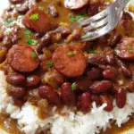Scoop warm rice into a deep bowl, then ladle the thick, rich beans on top. Make sure every serving gets sausage, tender beans, and a little of the smoky broth. Sprinkle a spoonful of chopped green onions on top for a fresh crunch and bright color. For extra flavor, add a splash of your favorite hot sauce. Serve with cornbread or a simple green salad on the side for a complete meal.