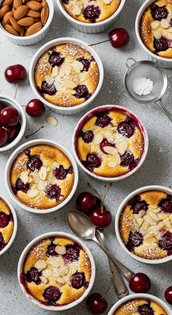 Cherry Clafoutis is a traditional French dessert that’s like a cross between a custard and a pancake, studded with juicy cherries. The lemon zest and almond extract add a bright, nutty depth, while the toasted almonds and powdered sugar give it a perfect finish. What makes it special? It’s quick to prep, uses simple ingredients, and looks impressive without requiring advanced baking skills.