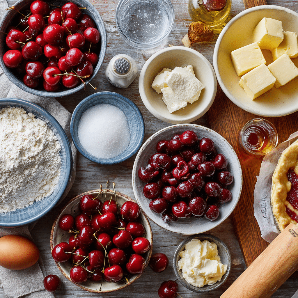 This cherry pie comes together with ingredients that create a flaky crust and juicy filling. Here’s what you need and why each matters: