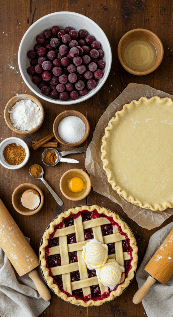 Here’s what you need to make this Cherry Pie. Each ingredient adds to the flaky, juicy, and flavorful magic.