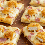 Craving a pizza that’s loaded with creamy, cheesy, and savory flavors inspired by the classic Chicken Cordon Bleu? The Chicken Cordon Bleu Pizza is your answer! This recipe transforms the elegant dish into a quick, family-friendly pizza with a creamy Alfredo base, tender ham, crispy chicken nuggets, and melty Swiss and mozzarella cheeses