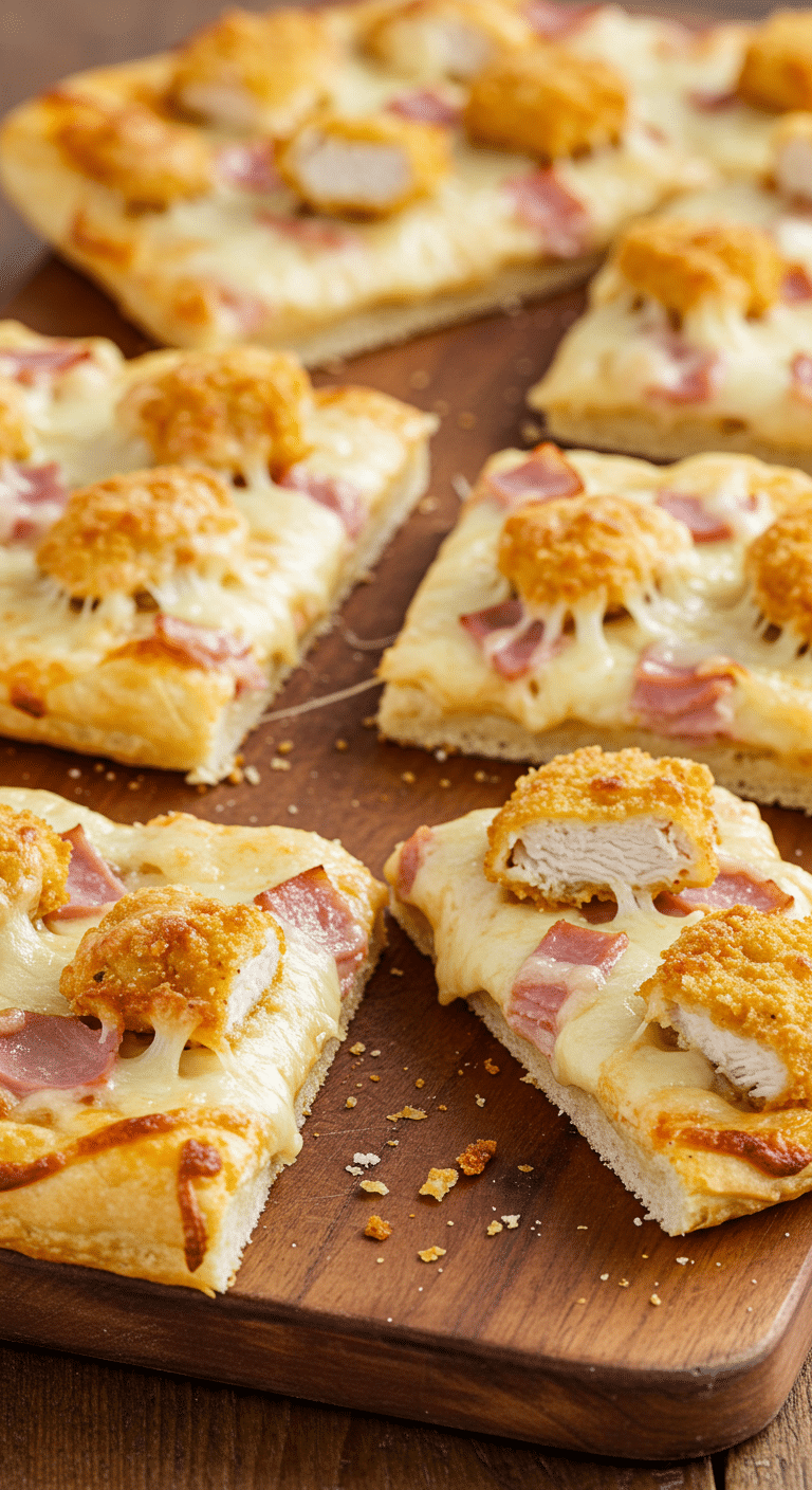 - Serving: Slice into squares or rectangles and serve on a large platter or directly from the pan for a casual vibe. Ensure each slice has a balance of ham, chicken, and cheese.
