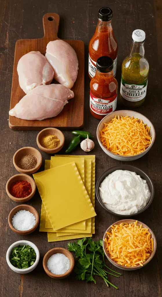 Chicken Enchilasagna uses bold, accessible ingredients for a flavorful result. Here’s what you’ll need for 6-8 servings: