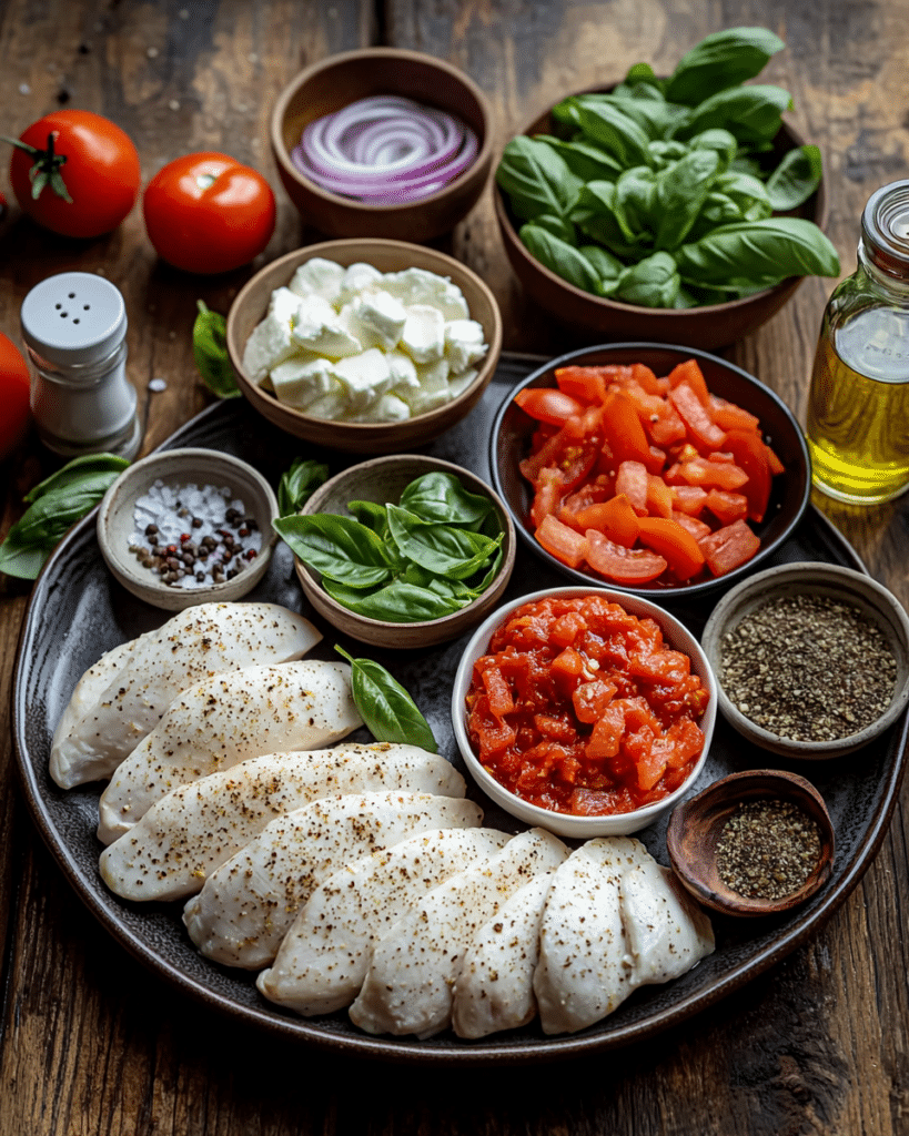 The goal for this Chicken Mozzarella Bake was to create a rich, flavorful dish where the tomato sauce and cheese complement the seasoned chicken without overpowering it. I wanted the chicken to stay juicy, the sauce to be tangy and aromatic, and the cheese to be perfectly melted and golden on top. Every bite needed to balance savory, cheesy, and herby notes for that ultimate comfort food experience.
