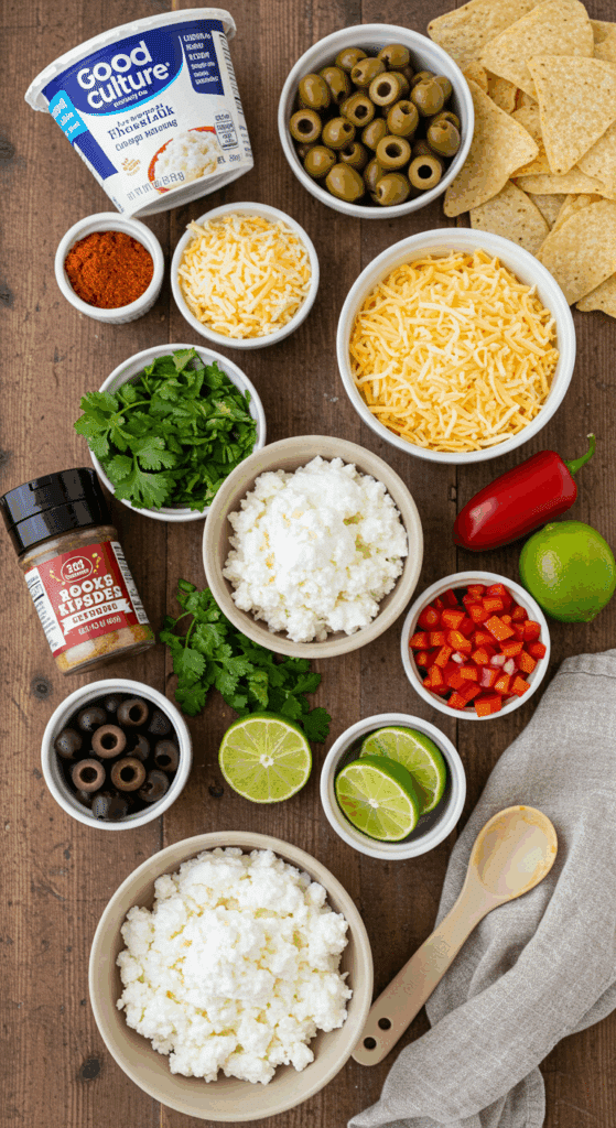 • Why It’s Special: Low-fat cottage cheese provides a creamy, protein-packed base, while taco seasoning, cheeses, and mix-ins add bold, queso-inspired flavor without cooking. This recipe yields about 3 cups (6-8 servings as a dip), perfect for sharing or meal prep.