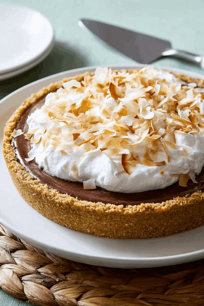 The vanilla wafer-coconut crust gives a crunchy, tropical base that pairs perfectly with the creamy ice cream. Bananas add natural sweetness and a soft texture, while the vanilla and chocolate ice cream layers create a classic flavor combo. The whipped cream topping is light and fluffy, and toasted coconut adds a nutty, elegant finish. Together, they make a pie that’s both simple and sophisticated.