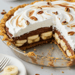 This Chocolate Banana Pie is a chilled dessert featuring a pecan-infused pastry crust, a creamy cream cheese layer, sweet bananas, chocolate pudding, and whipped cream topping, finished with a sprinkle of pecans. It’s vegetarian, beginner-friendly with some baking, and ideal for making ahead, offering a perfect balance of creamy, fruity, and nutty textures with rich, indulgent flavors.