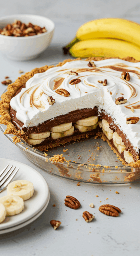Why These Ingredients Matter: The pecan crust adds a nutty crunch, the cream cheese and whipped cream layers provide creamy richness, bananas offer natural sweetness, the chocolate pudding brings decadence, and the pecan topping ties it all together with texture.