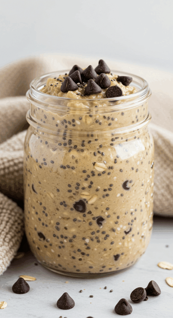 Chocolate Chip Cookie Dough Overnight Oats are designed for meal prep and convenience.