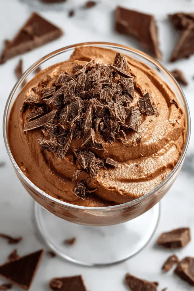 Add a pinch of espresso powder to enhance the chocolate flavor even more. For a mocha version, blend in a teaspoon of instant coffee or brewed espresso. Stir in mini chocolate chips or chopped nuts for added crunch. Layer it with banana slices or berries for a mousse parfait.