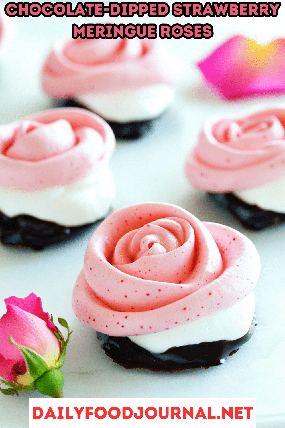 Chocolate-Dipped Strawberry Meringue Roses