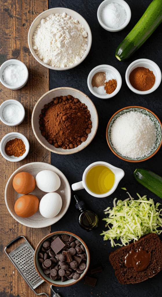 Here’s what you need to make this Chocolate Zucchini Bread. Each ingredient adds to the rich, moist, and chocolatey magic.
