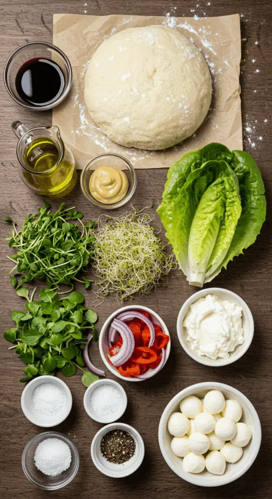 Craving a unique, summery dish that combines the comfort of pizza with the freshness of a salad? This Chopped Italian Salad Pizza is your perfect choice! Featuring a golden, olive oil-brushed pizza crust topped with creamy ricotta and a vibrant salad of Bibb lettuce, microgreens, red onion, pepperoncini, and mozzarella balls, all tossed in a zesty red wine vinaigrette, this dish is a delightful fusion of Italian flavors. Perfect for casual dinners, summer gatherings, or a fun vegetarian meal, it’s inspired by your love for vibrant, veggie-forward dishes like End of Summer Cobb Salad and Skillet Pasta with Summer Squash. Naturally vegetarian and adaptable for gluten-free or low-carb diets, this pizza is a fresh, crowd-pleasing treat. Ready to bake and assemble a pizza masterpiece? Let’s dive into this delicious recipe!
