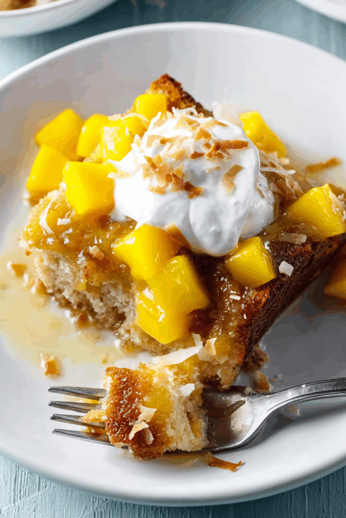 • Why It’s Unique: The slow cooker creates a moist, sponge-like cake that soaks up a creamy coconut sauce, enhanced by apricot preserves for subtle fruitiness. The addition of fresh mangoes and toasted coconut brings a tropical flair, while whipped topping adds a light, creamy finish. This recipe serves 8-10, perfect for sharing at dinners, potlucks, or celebrations, with a texture that’s both comforting and exotic.