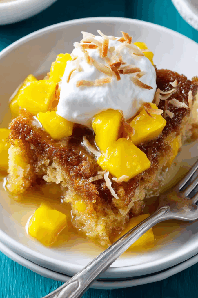 You’ve just made Coconut-Mango Malva Pudding—a warm, tropical, and indulgent dessert that’s perfect for any occasion! This slow-cooker recipe is easy, flavorful, and so versatile you can make it your own. Whether you top it with mangoes and whipped cream or try a new variation, it’s sure to impress. Scoop out a portion, enjoy the saucy goodness, and savor the tropical vibes. What’s your favorite tropical dessert topping? Share your ideas in the comments, and happy cooking!
