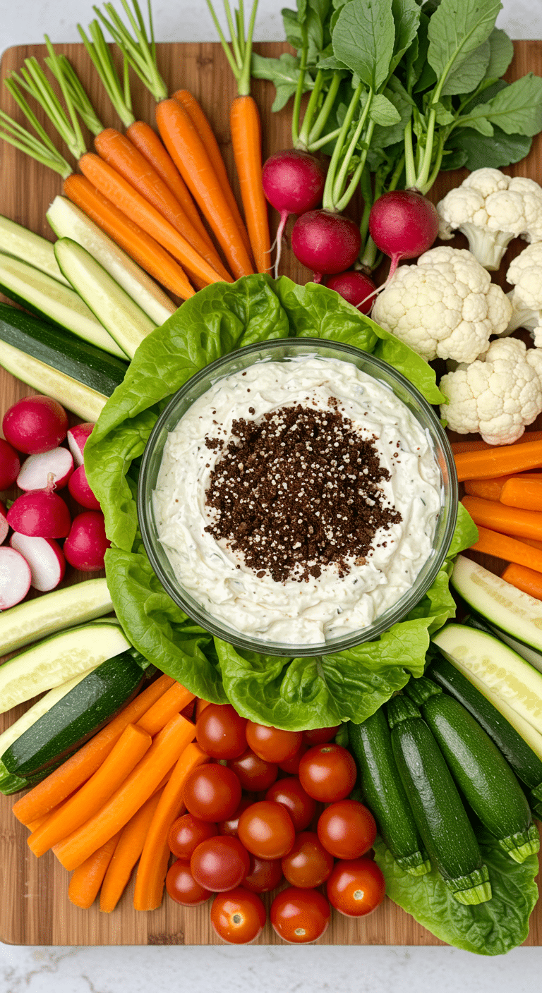 • Display the Platter: Place the dip bowl in the center of a large platter, surrounded by colorful crudités to mimic a compost pile.