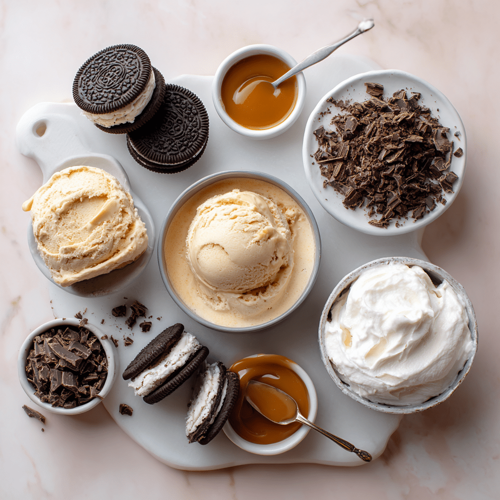 Pro Tip: Soften ice cream at room temperature for 10-15 minutes until spreadable but not melted. Use store-bought cookies-and-cream cookies (e.g., Oreos) for convenience.