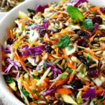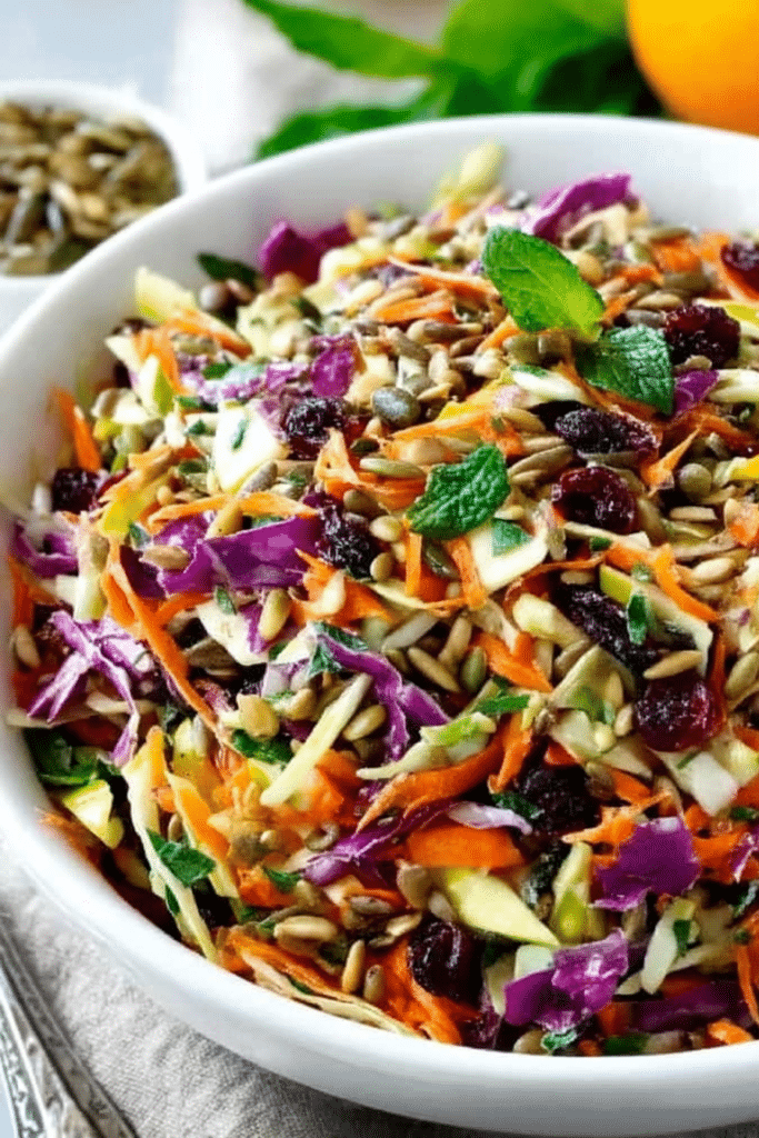 Sunflower seeds add nutty depth and more crunch, while dried cranberries offer little pops of sweetness that balance the savory ingredients.