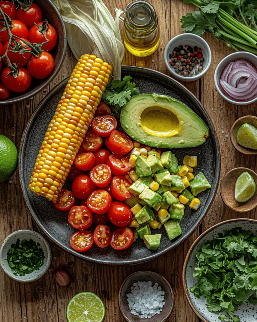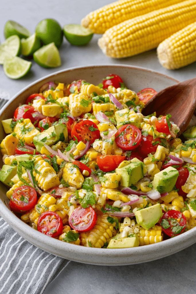 This salad takes me right back to summer barbecues, where fresh corn was always on the grill, tomatoes were bursting with sweetness, and every meal felt casual and joyful.
