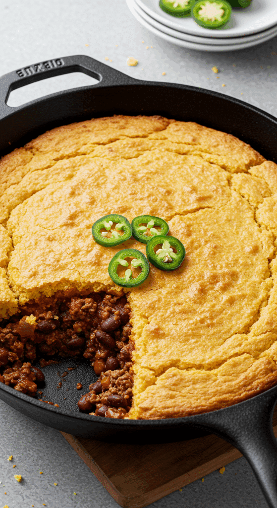 - Presentation: For a cozy vibe, use rustic or colorful plates to highlight the golden cornbread and red chili. Serve family-style from the skillet for gatherings. Tip: A drizzle of hot sauce or extra cheese adds a restaurant-style touch.