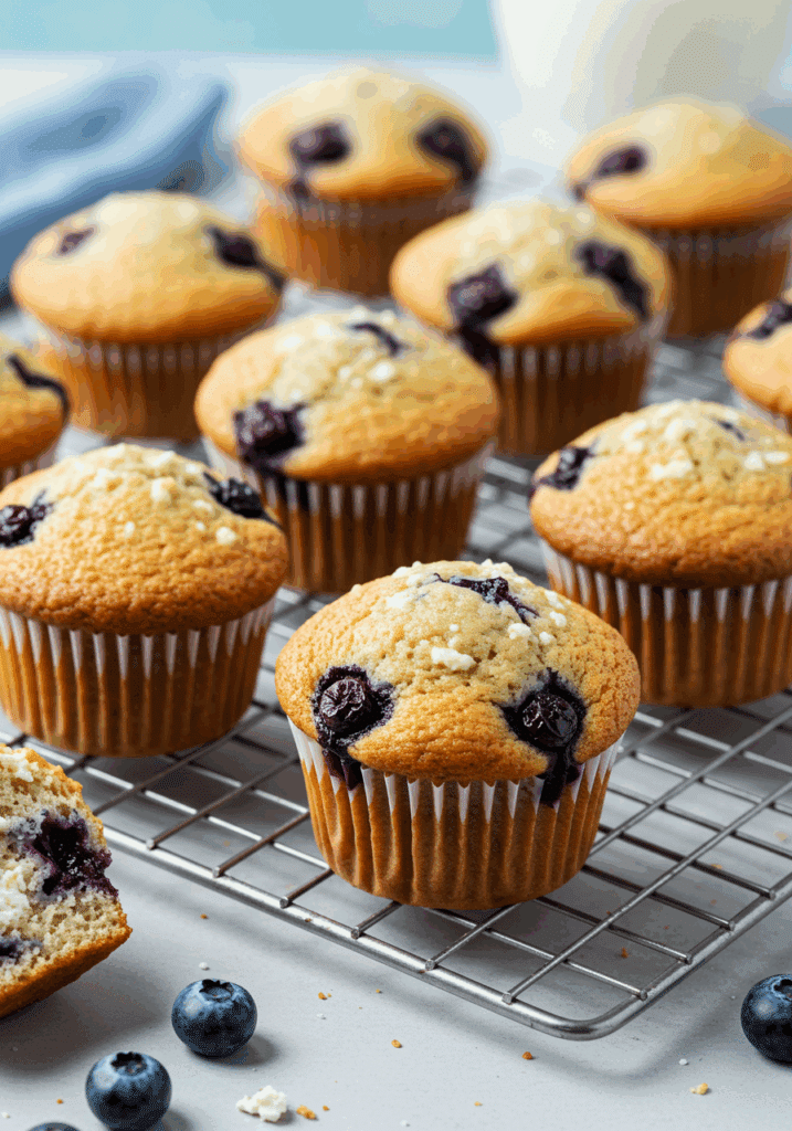 Tip: Mix just until no dry flour remains to keep muffins tender; gently fold blueberries to avoid crushing.