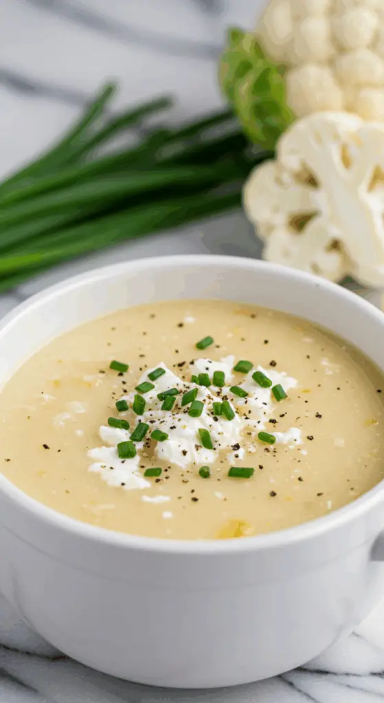 • Cheesy Cauliflower Soup: Stir in ¼ cup shredded cheddar or Parmesan after blending for extra richness.