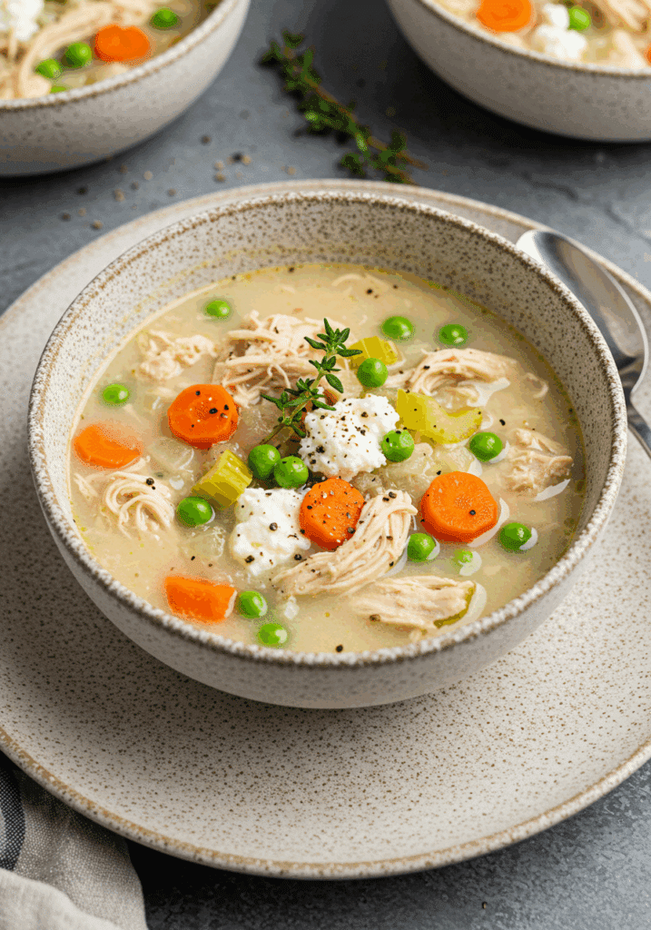 This Cottage Cheese Chicken Soup blends the familiar comfort of chicken soup with the creamy, nutrient-packed addition of cottage cheese. Loaded with vegetables, shredded chicken, and aromatic thyme, it’s a balanced, protein-rich meal that’s both filling and flavorful. What makes it special? It’s quick, gluten-free, and a great way to use leftover chicken while adding a creamy twist without heavy cream.