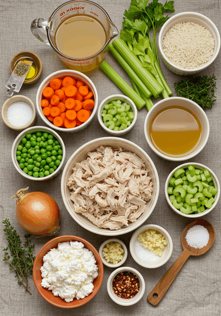 Here’s what you need to make this Cottage Cheese Chicken Soup. Each ingredient adds to the hearty, creamy, and savory magic.