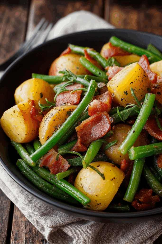 Pro Tip: Serve family-style by placing the green beans and potatoes in a large, warmed serving bowl with a spoon, alongside a dish of fresh herbs and extra bacon crumbles, letting everyone help themselves—it’s a warm, communal way to enjoy this dish, perfect for gatherings!