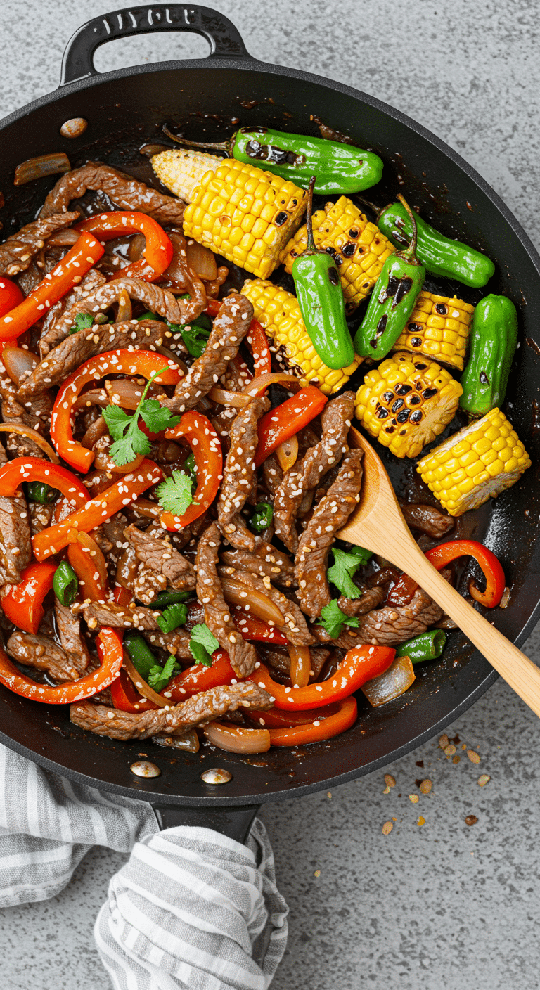You’re now ready to master Crazy Szechuan Beef and Messy Corn with Shishito! These quick, vibrant dishes bring spicy beef and charred corn together for a meal that’s perfect for busy nights, summer gatherings, or cozy fall dinners. With just 30 minutes, you can create a bold, wholesome feast that’s as fun as it is flavorful. Play with spicy or vegetarian twists to make it your own. Grab that steak, fire up the skillet, and enjoy this exciting meal. Share your results in the comments—I’d love to hear how it turned out!