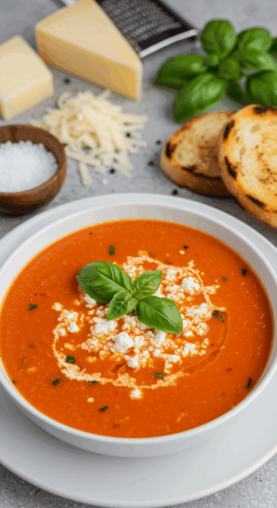 • Cheesy Tomato Soup: Stir in ¼ cup grated cheddar or Parmesan after blending for a richer taste.