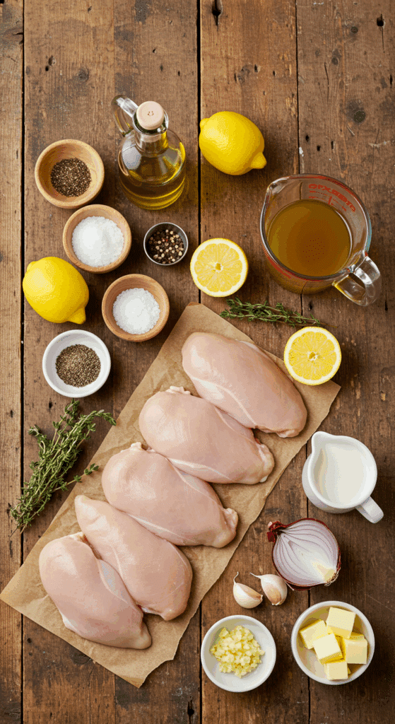 Here’s the lineup for 4 servings (1 chicken breast each). Each ingredient plays a key role, with swaps for flexibility.