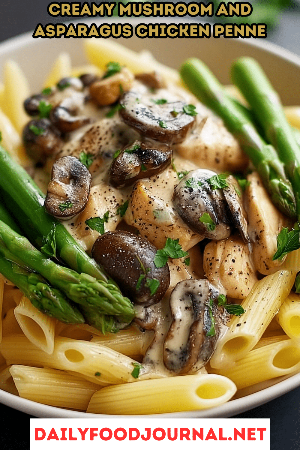 Creamy Mushroom and Asparagus Chicken Penne