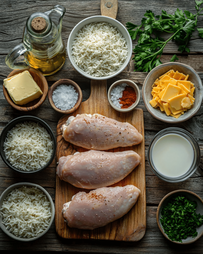 Every ingredient is chosen to create balance—richness from the cheese, freshness from the herbs, and heartiness from the rice and chicken.