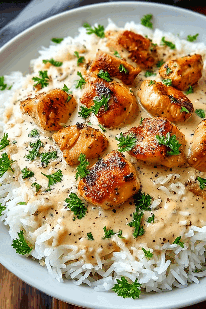 This dish reminds me of Sunday dinners growing up—meals where the whole family gathered, and the kitchen smelled like love. The creamy sauce, the golden-browned chicken, the fluffy rice… it feels familiar, like something your grandma would make, but with just enough of a modern twist to keep things interesting. It’s hearty and satisfying, the kind of meal that makes you want seconds before you’re even done with your first plate.