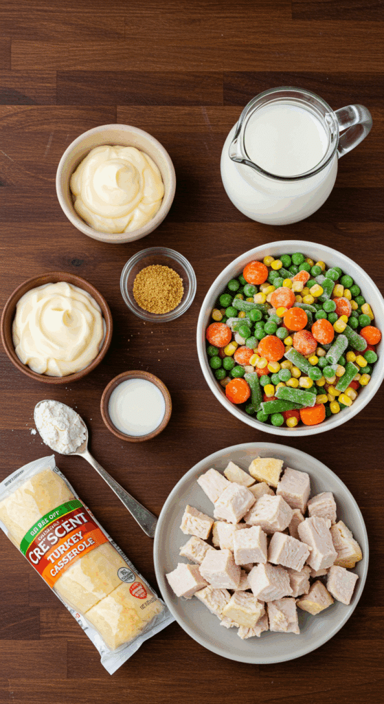 To make a Crescent Turkey Casserole that serves 4, you’ll need these key ingredients. Each one plays a role in creating that cozy, comforting vibe: