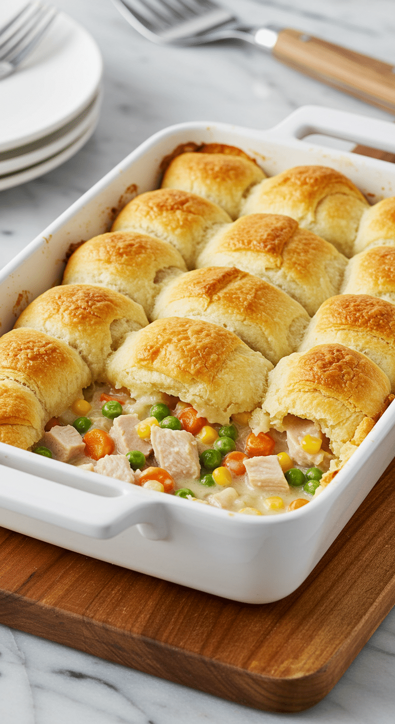 The Crescent Turkey Casserole is your go-to for a quick, comforting meal that’s packed with flavor and perfect for using up leftovers. With its creamy turkey-veggie filling and golden crescent roll topping, it’s a dish that feels like home but takes just 30 minutes to make. Whether you’re feeding your family, prepping for the week, or bringing a dish to a potluck, this casserole is sure to impress. Try it as is or add your own spin—maybe some cheese or a spicy kick? Share your creations with us! Grab your ingredients, preheat that oven, and enjoy this cozy, delicious meal!