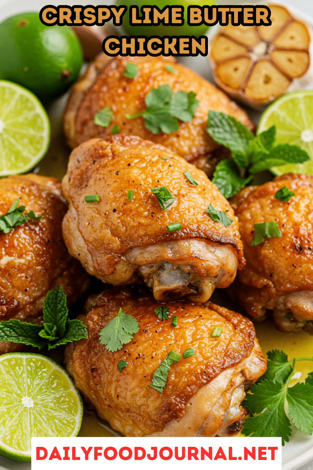 - Plate the chicken thighs, skin-side up, and spoon the lime butter sauce over them.