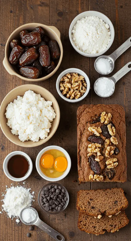 - Why It’s Special: Dates provide natural sweetness, cottage cheese adds protein and moisture, and walnuts and chocolate chips bring texture and indulgence. This recipe yields 8-10 slices (using a standard 9×5-inch loaf pan), perfect for sharing or meal prep.
