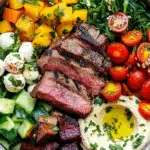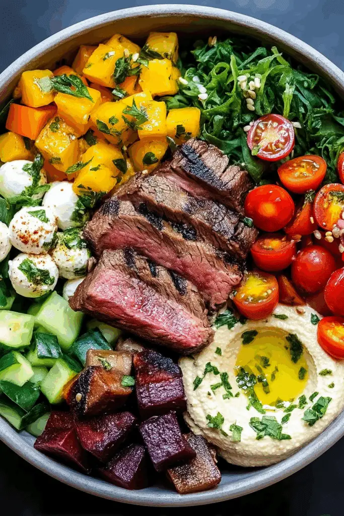 • Tip: Layer ingredients for a vibrant presentation—vegetables on the bottom, steak in the center, and sauce as a creamy crown. Warm bowls slightly for a cozy touch.