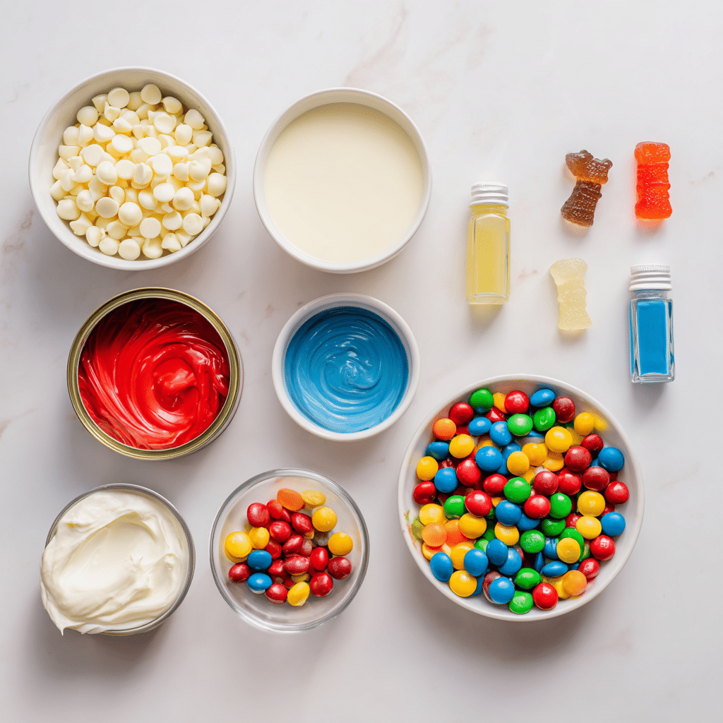 A batch of Delicious Skittles Fudge needs just a few simple ingredients. Here’s what you’ll need for an 8-inch square pan (about 16-20 pieces):