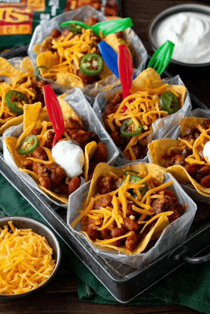 5. Layer and Top: Add chili and toppings to each bag for a handheld feast.