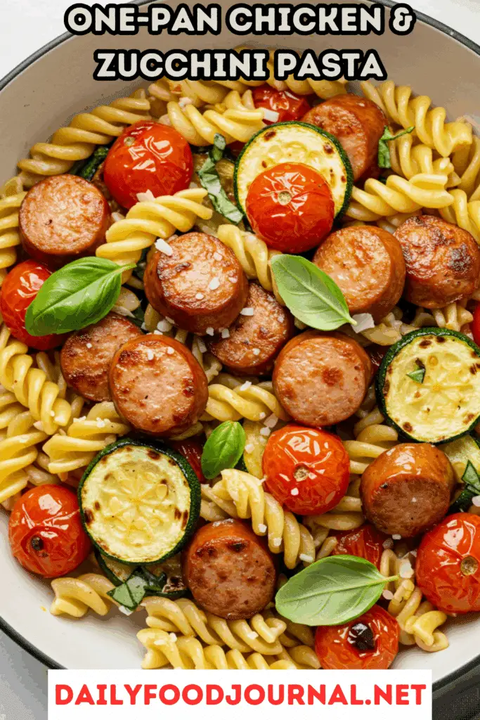 Chicken Sausages with Zucchini, Tomatoes, and Pasta