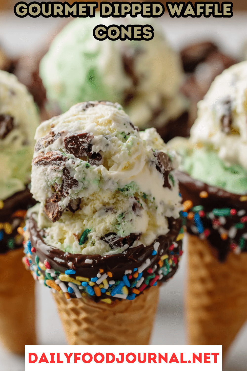 Your Dipped and Decorated Waffle Cones are ready to bring crunchy, chocolatey joy to any occasion! With a crisp waffle cone, rich chocolate coating, fun toppings, and a refreshing Triple Mint Choc Chip Ice Cream (or your favorite flavor), these treats are perfect for summer parties, kids’ gatherings, or a sweet indulgence. Whether you customize the toppings or stick with the minty ice cream, you’re in for a dessert that’s as delightful to make as it is to eat. Grab your waffle cones, dip into some creative fun, and enjoy every crunchy, creamy bite. We’d love to see your creations—share your photos or tips in the comments or on social media! Happy dipping!